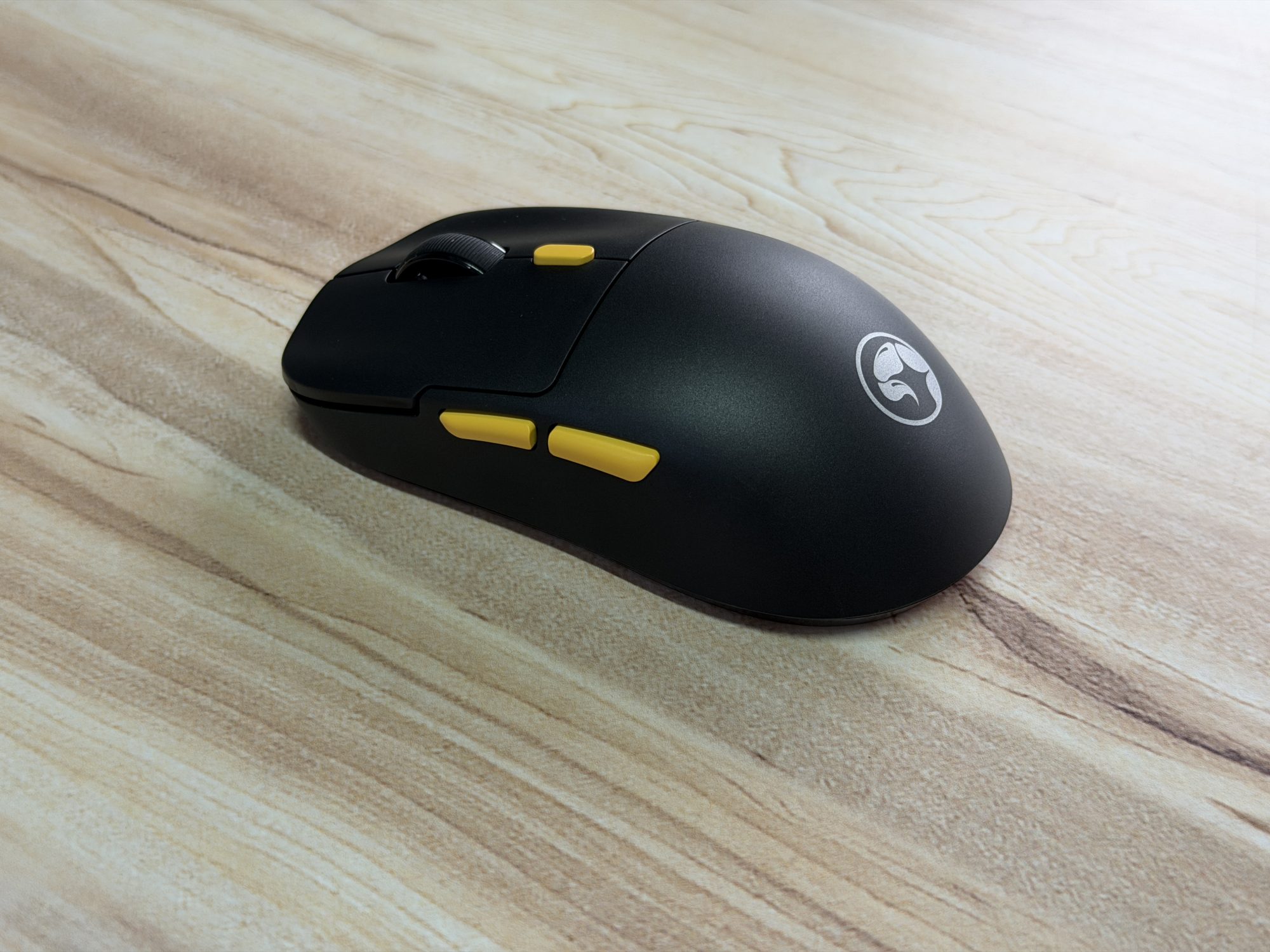 Niro 50 completează pachetul exact cum trebuie: un mouse wireless simplu și eficient. Are trei moduri de conectare (cablu, Bluetooth și wireless 2.4 GHz), deci îl poți folosi atât la gaming, cât și la office, fără să te încurce. Din prima mi-a dat senzația aia de familiaritate, genul de formă pe care o recunoști imediat în palmă. E potrivit pentru mâini medii, iar controlul e satisfăcător, fără să simți că te lupți cu el.