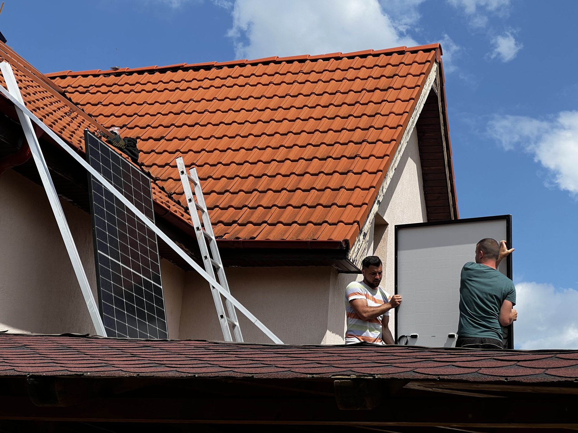 V-am povestit deja că sutn pățit cu Casa Verde, deci nici la montaj nu am putut scăpa de ghinioane, așa că, ceea ce durează la alții 4 ore, la mine a fost realizat în 8… 🙁 Iar abia pe 23 mai au instalat și invertorul, care nu era pe stoc la momentul respectiv.