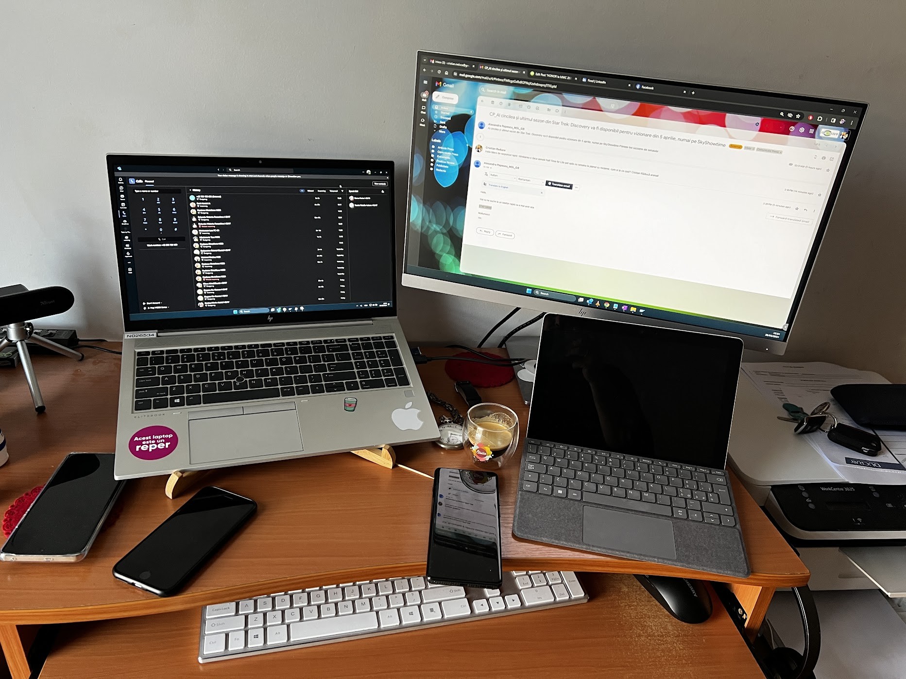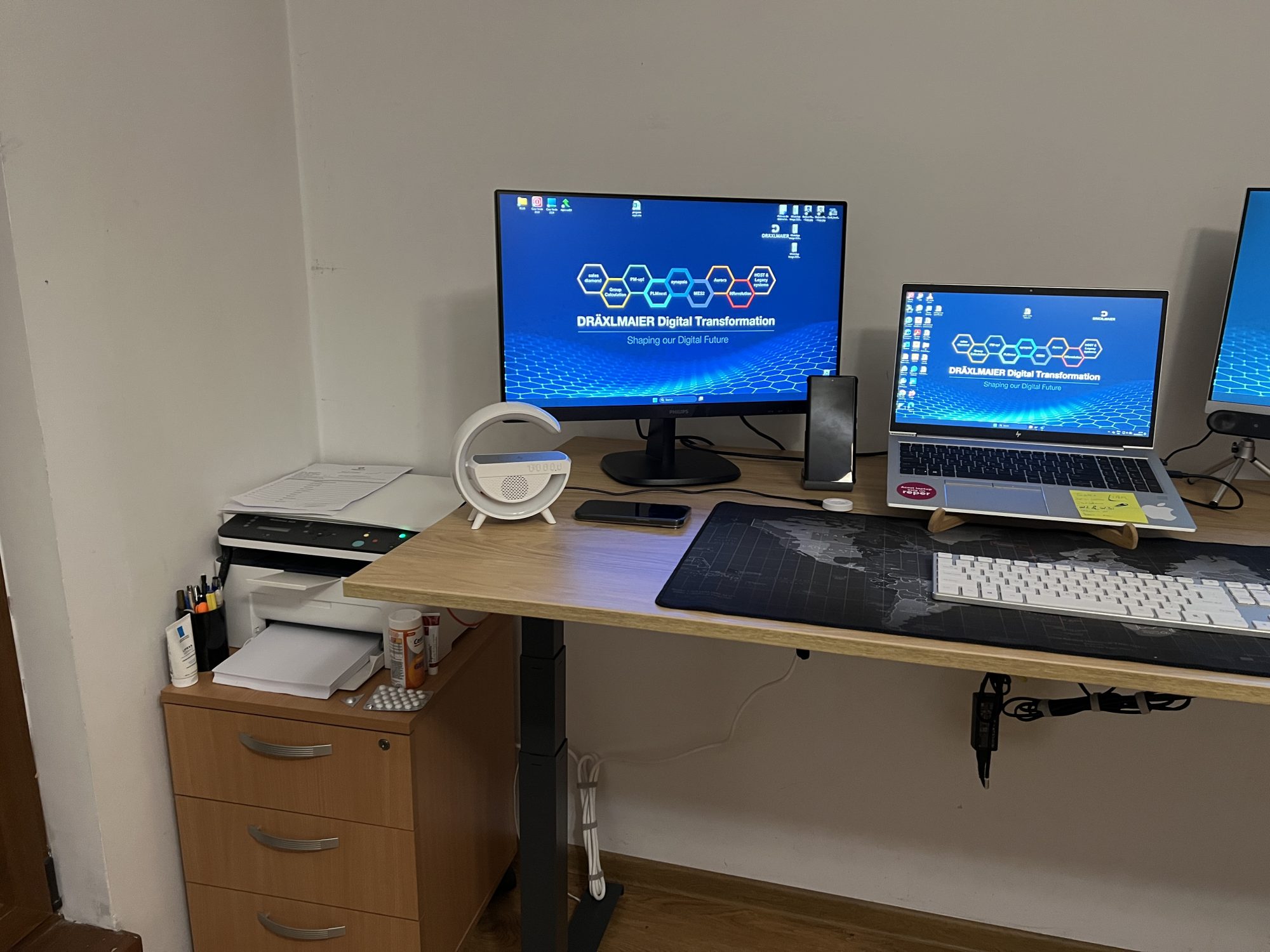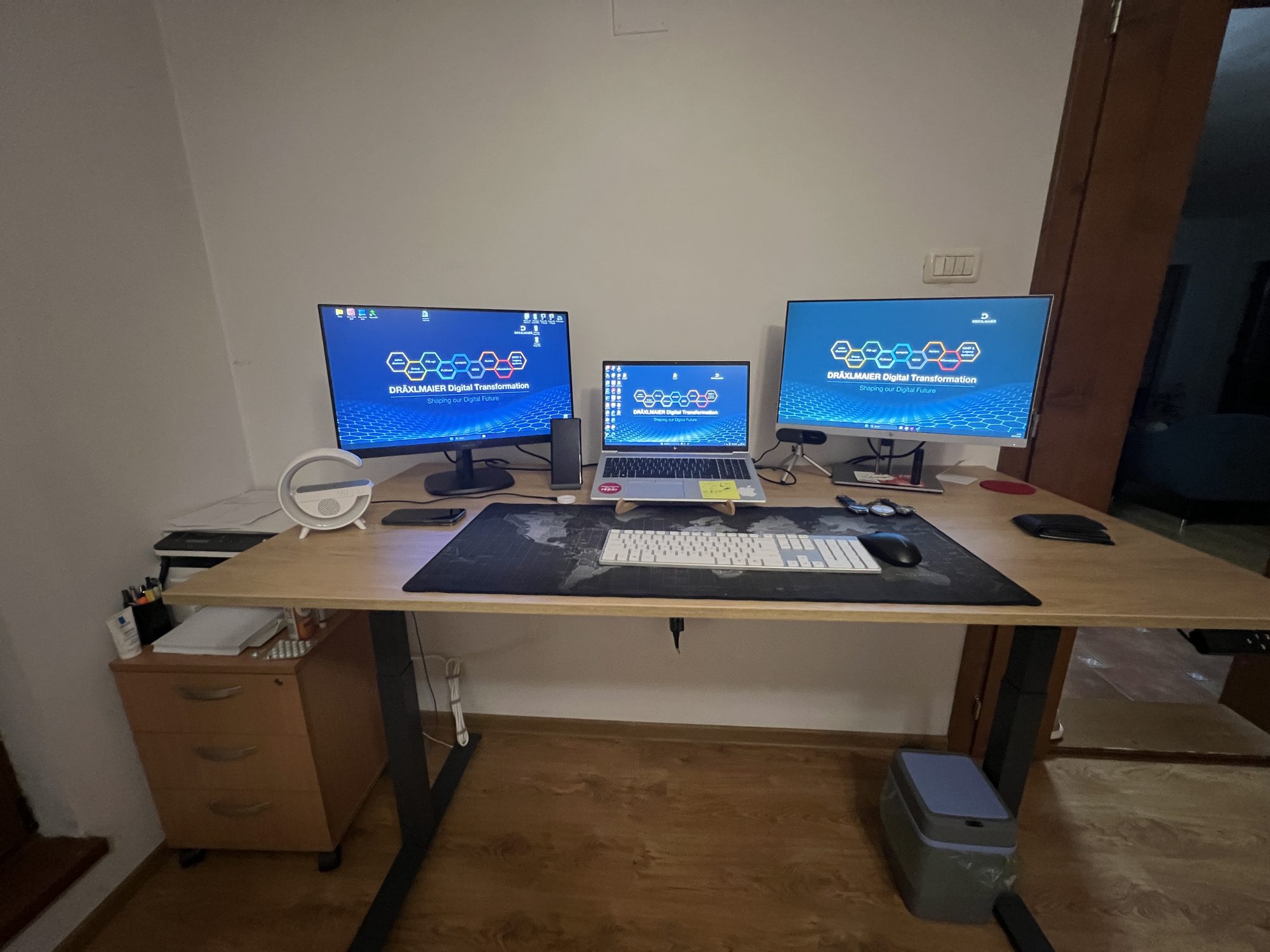 Ei bine, acum un an am văzut la Darius articolul acesta, dar prins fiind în ”filmul” meu, am parcat ideea undeva, până luna trecută. Am la activ deja o hernie de disc lombară și, de obicei, ședințele de acasă le fac umblând prin birou (mă ajută și căștile bluetooth, ca să fiu sincer 😛 ). Tot plimbându-mă așa, am realizat că num-ar ajuta deloc un birou clasic, pentru că, uneori, tot ce aș face ar fi să dau ture în jurul lui. Așa că am revenit la ideea lui Darius, am sunat la o firmă care știu că face așa ceva și care este de încredere (Class Office, pentru cei interesați), am primit o ofertă și am așteptat vreo două săptămâni până mi-au livrat biroul. Vă las mai jos pozele din randare și cu el deja montat, ca să vedeți că a ieșit fix cum au promis.