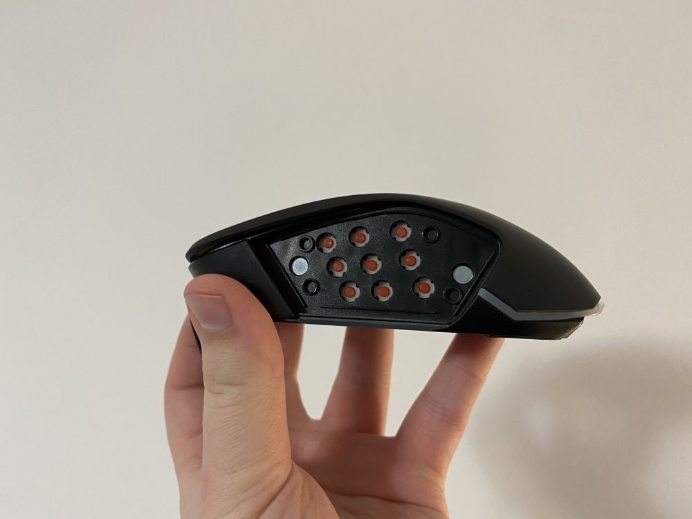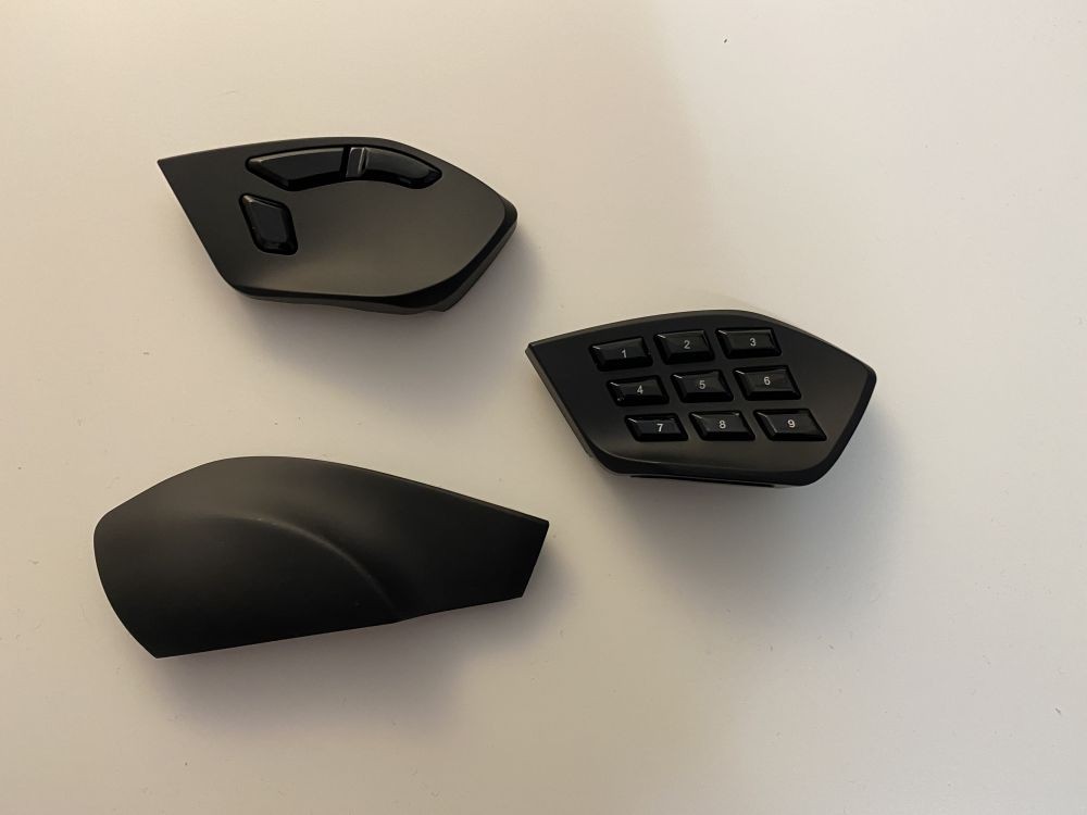 Inclusiv partea laterala dreapta poate fi schimbata cu un capac special care ofera un suport mai bun pentru degetul inelar si cel mic. Tare interesant.