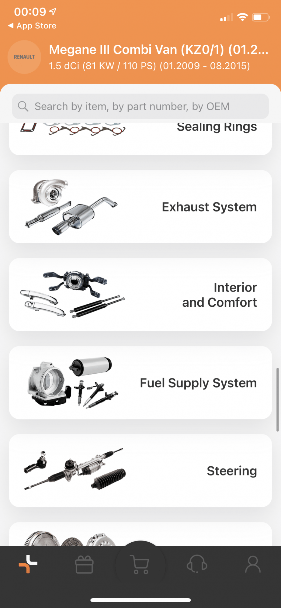 Repet, iti selectezi masina (presupunem faptul ca ti-ai facut deja cont, ca asa e normal peste tot), alegi metoda de plata si unde sa ti se livreze comanda. Este foarte simplu si banal, ca la orice alt magazin online. Doar ca aici cumperi piese pentru masina. Procedura este extrem de simpla si aplicatia este foarte bine structurata. Totul este impartit pe categorii mari si clare si este aproape imposibil sa nu gasesti ce ai nevoie. Pe langa faptul ca aplicatia iti imparte piesele pe categorii ai si optiunea de cautare manuala dupa nume.