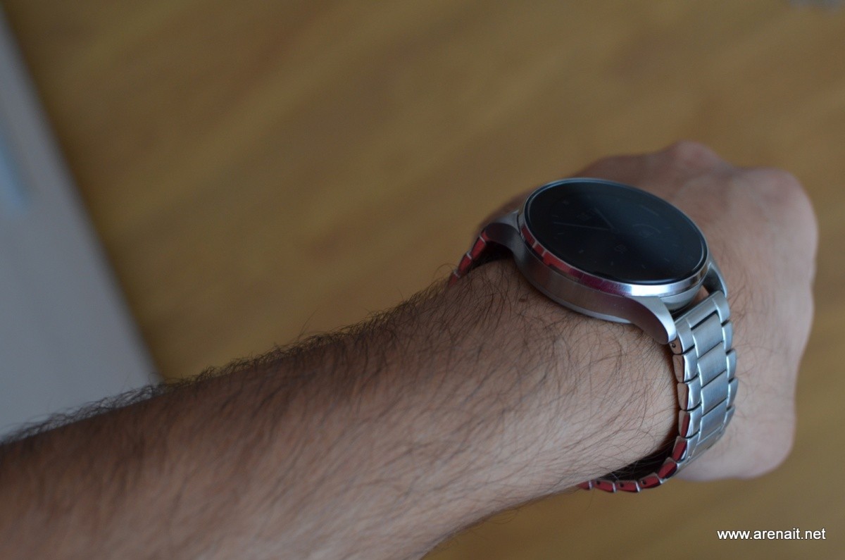 De la o distanta de minim 40-50 cm ecranul pare cel al unui ceas normal, cu fundal negru. Initial nici nu vezi conturul negru din jurul ecranului. Da, daca ti se pune pata pe el acesta poate fi considerat urat si deranjant, insa mie nu mi se pare ca-i strica designul. Ba mai mult, in varianta cu carcasa neagra si curea de silicon/piele de culoare neagra arata perfect. Recunosc, mi-ar fi placut foarte mult sa incerc varianta neagra + curea de silicon, aceasta fiind cea pe care as cumpara-o.