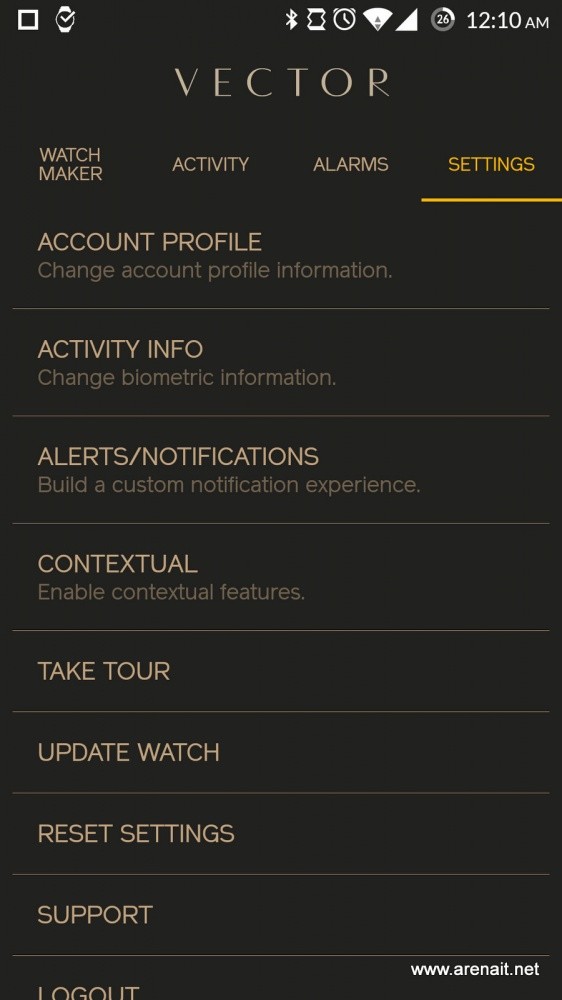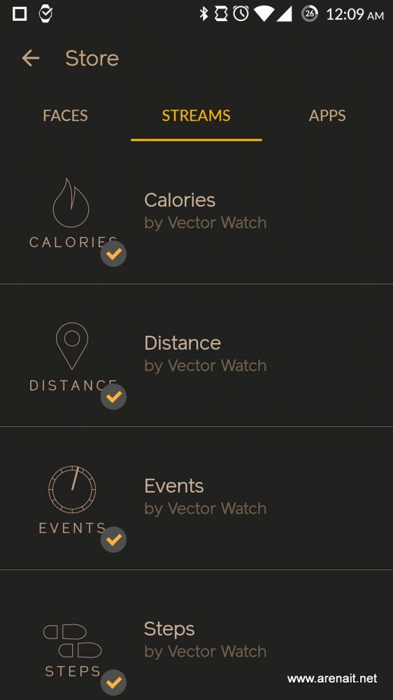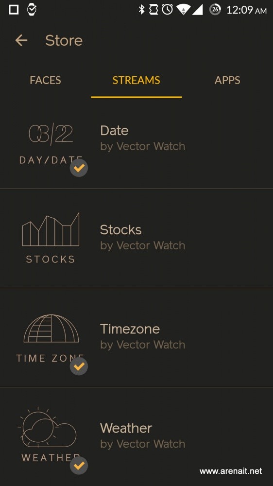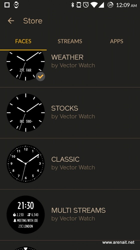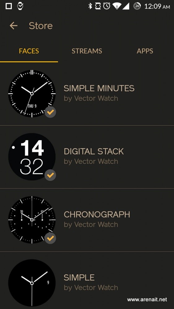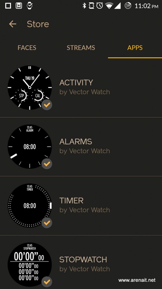 Aplicatii. Din pacate va spun ca store-ul de aplicatii este inca mic, foarte mic. Avem cateva aplicatii, toate facute de echipa Vector Watch: alarme, timer, stopwatch sau cateva de citit stiri: CNET, Economist, BBC. Nu-s inutile, insa nici nu adauga foarte multa functionalitate. Mi-as dori sa vad aici aplicatii precum Endomondo – pentru conectarea cu telefonul atunci cand merg cu bicicleta.