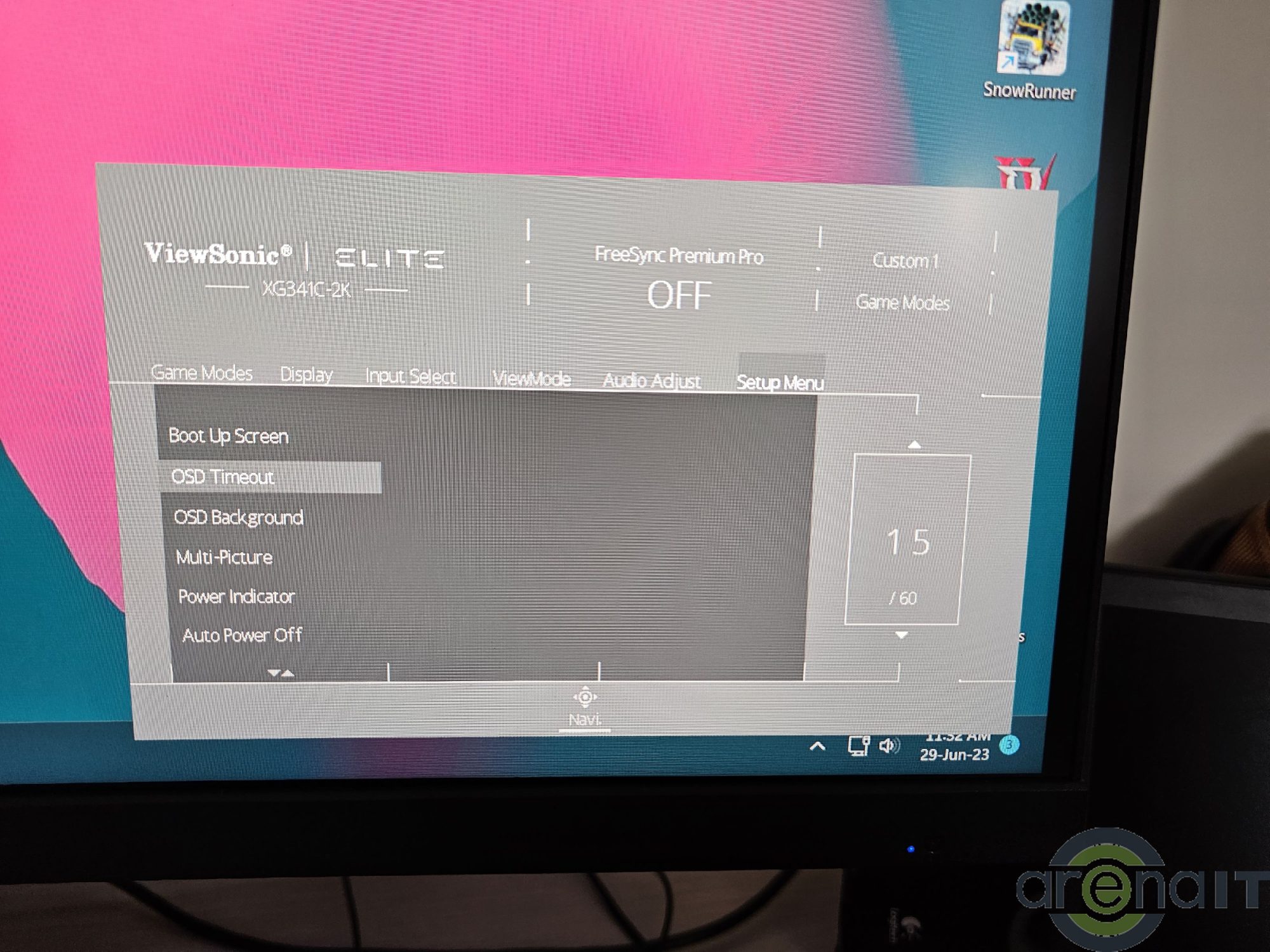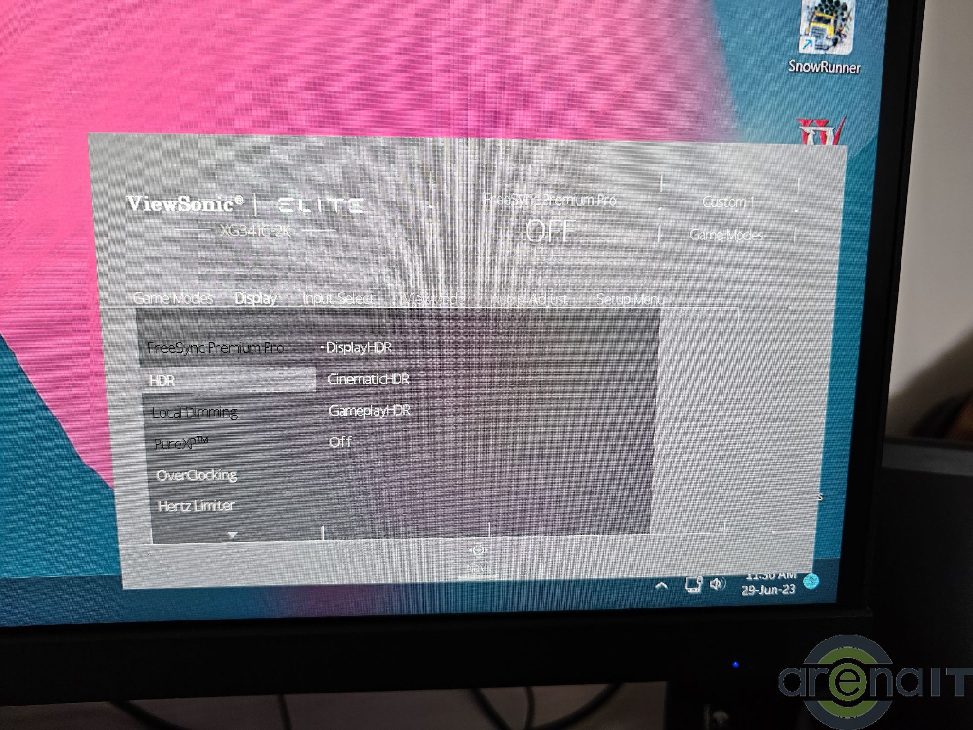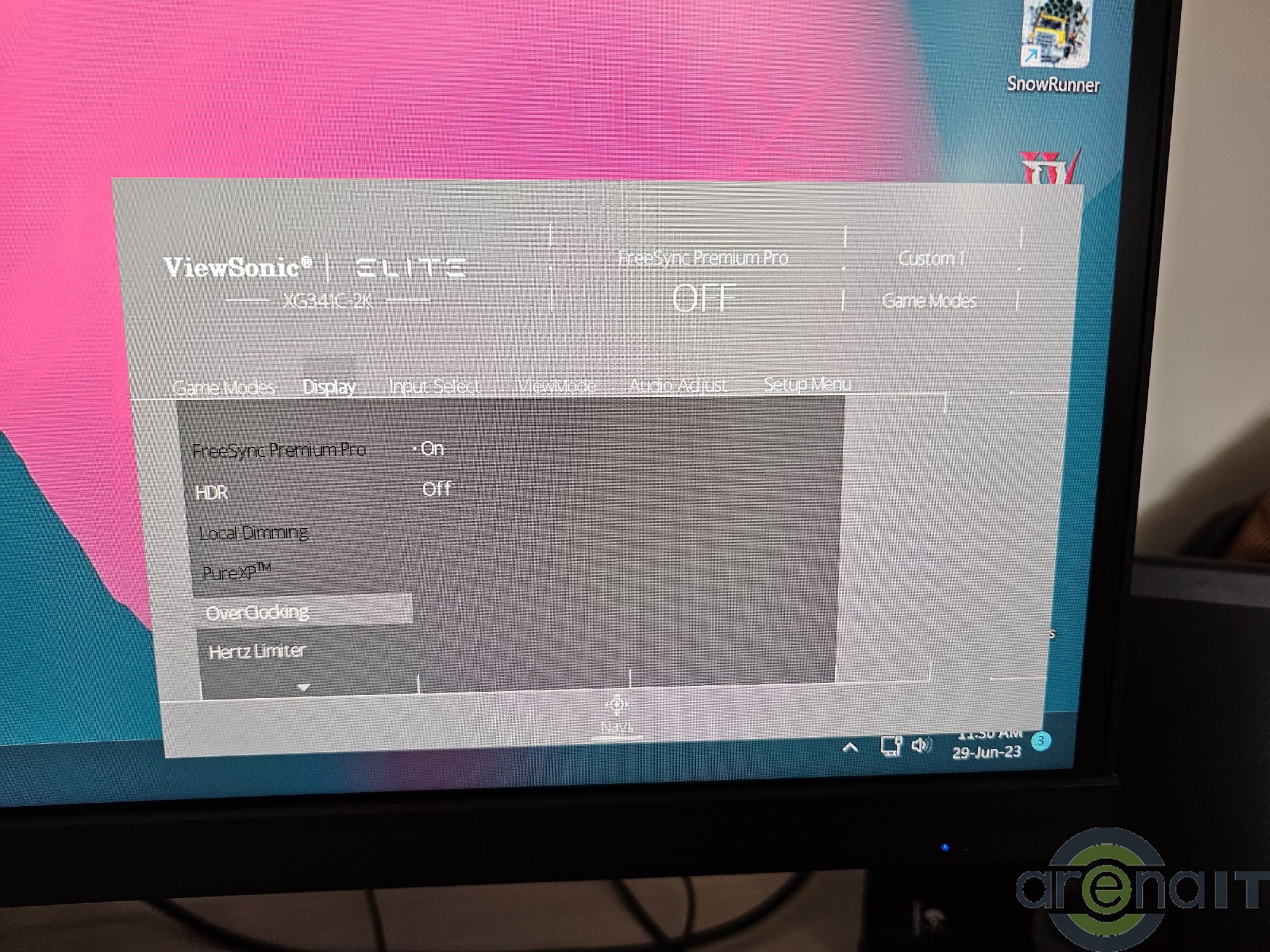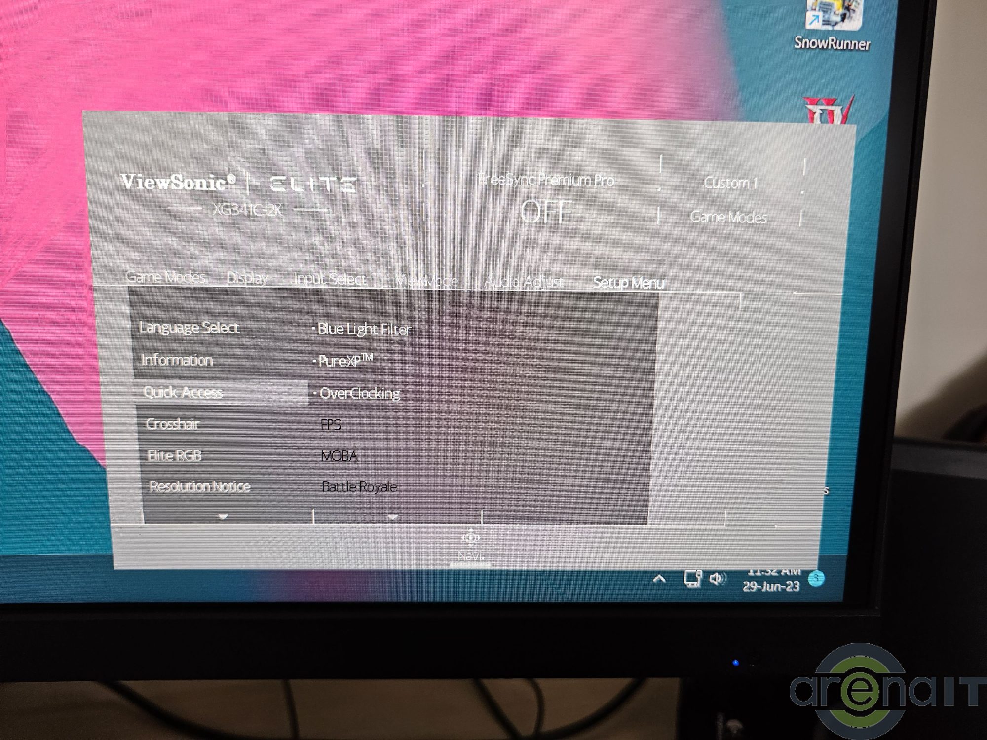 Meniul OSD este foarte elementar din punct de vedere al interfetei, dar are toate setarile pe care le-ai astepta. De la moduri speciale pentru gaming, setari pentru HDR, PureXP Motion Blur, limitare rata de reimprospatare si overclock pana la control asupra modului picture in picture toate sunt prezente. De mentionat ca modul overclock 200Hz nu va putea fi folosit alaturi de FreeSync Premium Pro si PureXP.