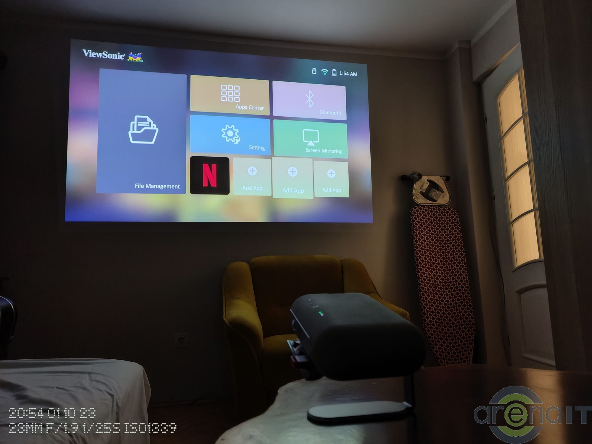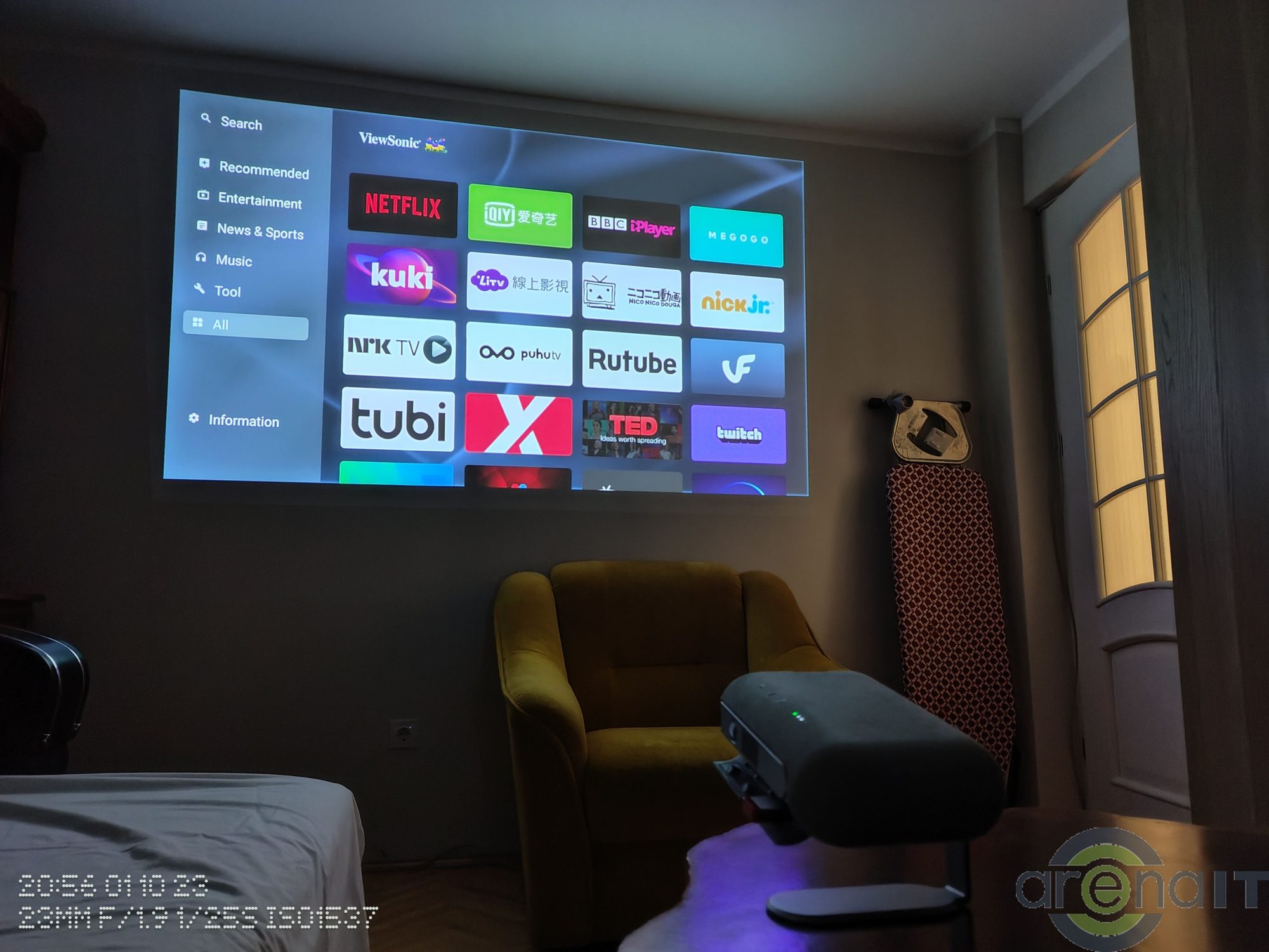 În materie de funcții speciale – oferă o setare care îi permite să fie utilizat în condiții de siguranță la altitudine înaltă. De pe Play Store se poate descărca aplicația ViewSonic vCastSender și instala pe telefon – va transforma telefonul într-o telecomandă modernă pentru proiector. Telefonul și proiectorul trebuie să fie conectate la aceiași rețea Wi-Fi pentru a beneficia de această funcție.