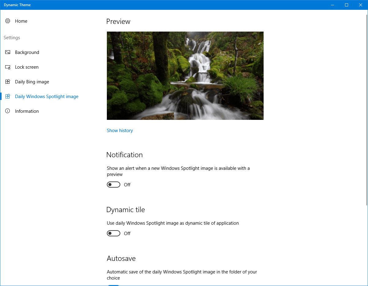 - sa descarce automat imaginile Spotlight si/sau Bing.com intr-un folder predefinit atunci cand acestea apar