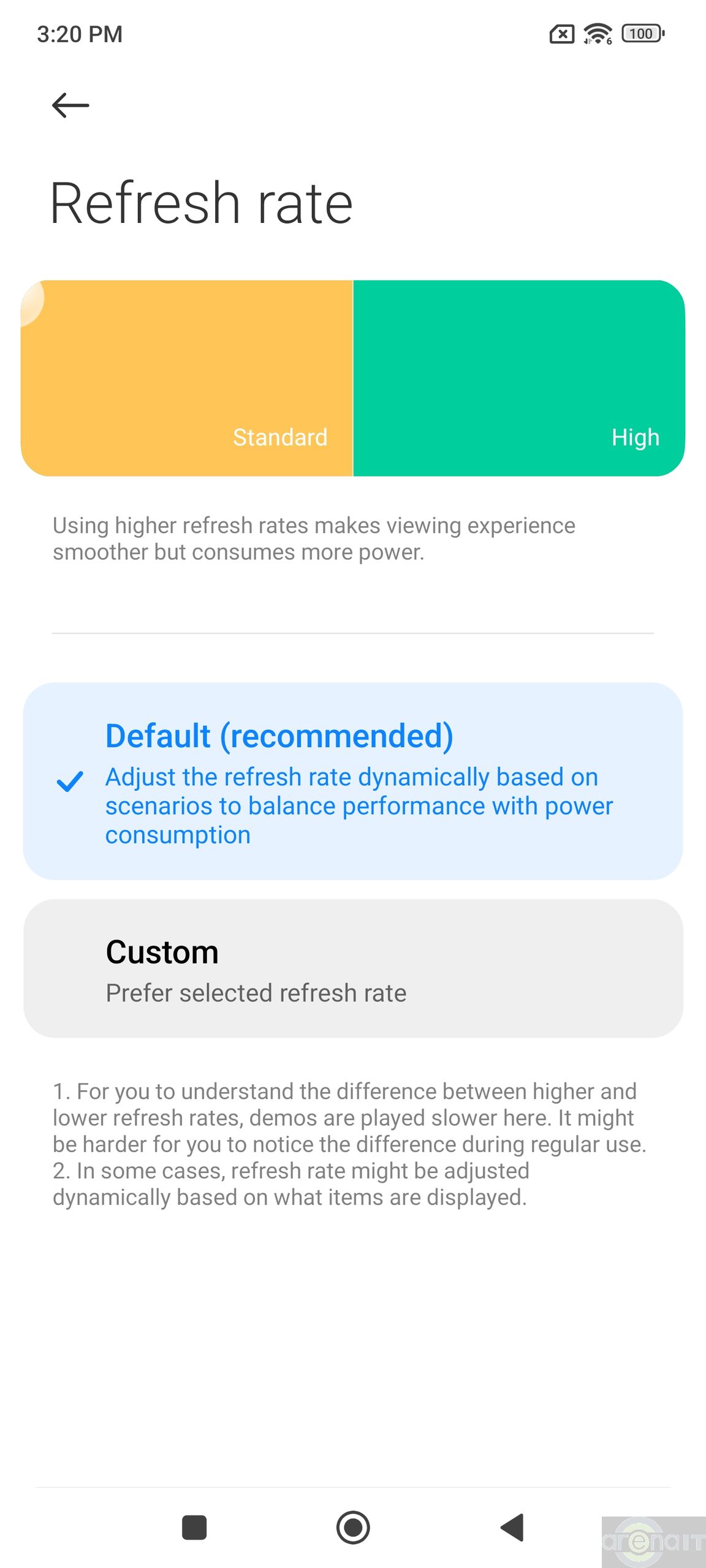 Ecranul este de tip LTPO AMOLED, cu o diagonala de 6.73inch, rezolutie 1440×3200 si cu o rata de refresh maxima de 120Hz. Faptul ca utilizeaza tehnologia LTPO ii permite sa isi adapteze rata de reimprospatare in functie de nevoi si astfel este gestionata mai bine durata de viata a bateriei. Lasat pe Auto, telefonul va gestiona automat rata de reimprospatare, iar optiunea Custom permite alegerea a trei valori implicite:60, 90 sau 120Hz. De asemenea, ofera AI image engine cu 4 subcategorii: super resolution, AI image enhacement, AI HDR enhancement si MEMC. Le vedeti explicate mai jos. Rezolutia de asemenea poate fi schimbata din 3200×1440 la 2400×1800. Always on display este de asemenea prezent.