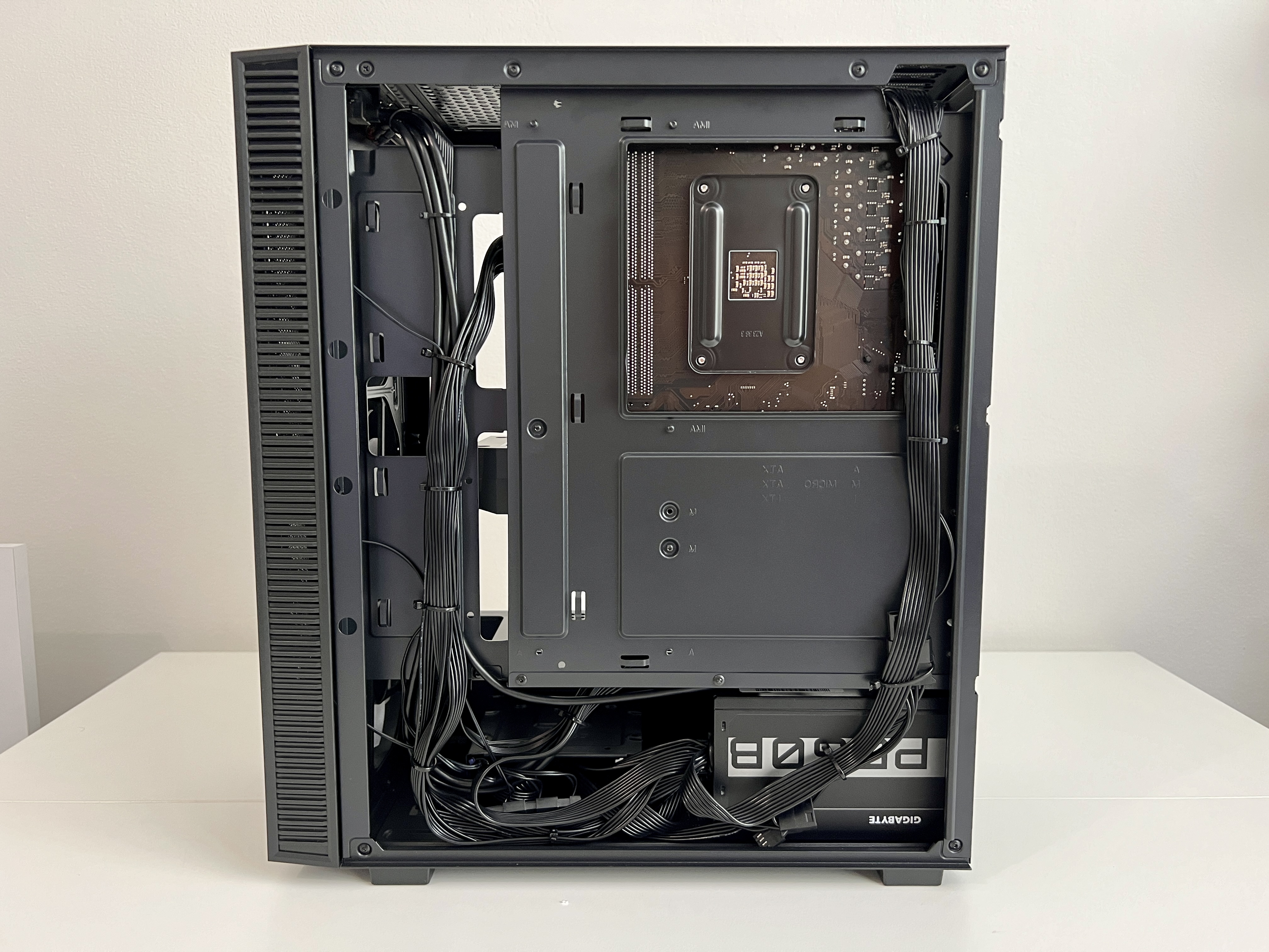 Un alt aspect pozitiv este alegerea sursei de alimentare. GIGABYTE P550B, cu o putere de 550W și eficiență de 85%, certificată 80+ Bronze, asigură alimentarea stabilă a tuturor componentelor și include toți conectorii necesari, inclusiv trei molex. Sursa beneficiază de multiple protecții (OVP, OPP, SCP, UVP, OCP, OTP) și folosește materiale de calitate.