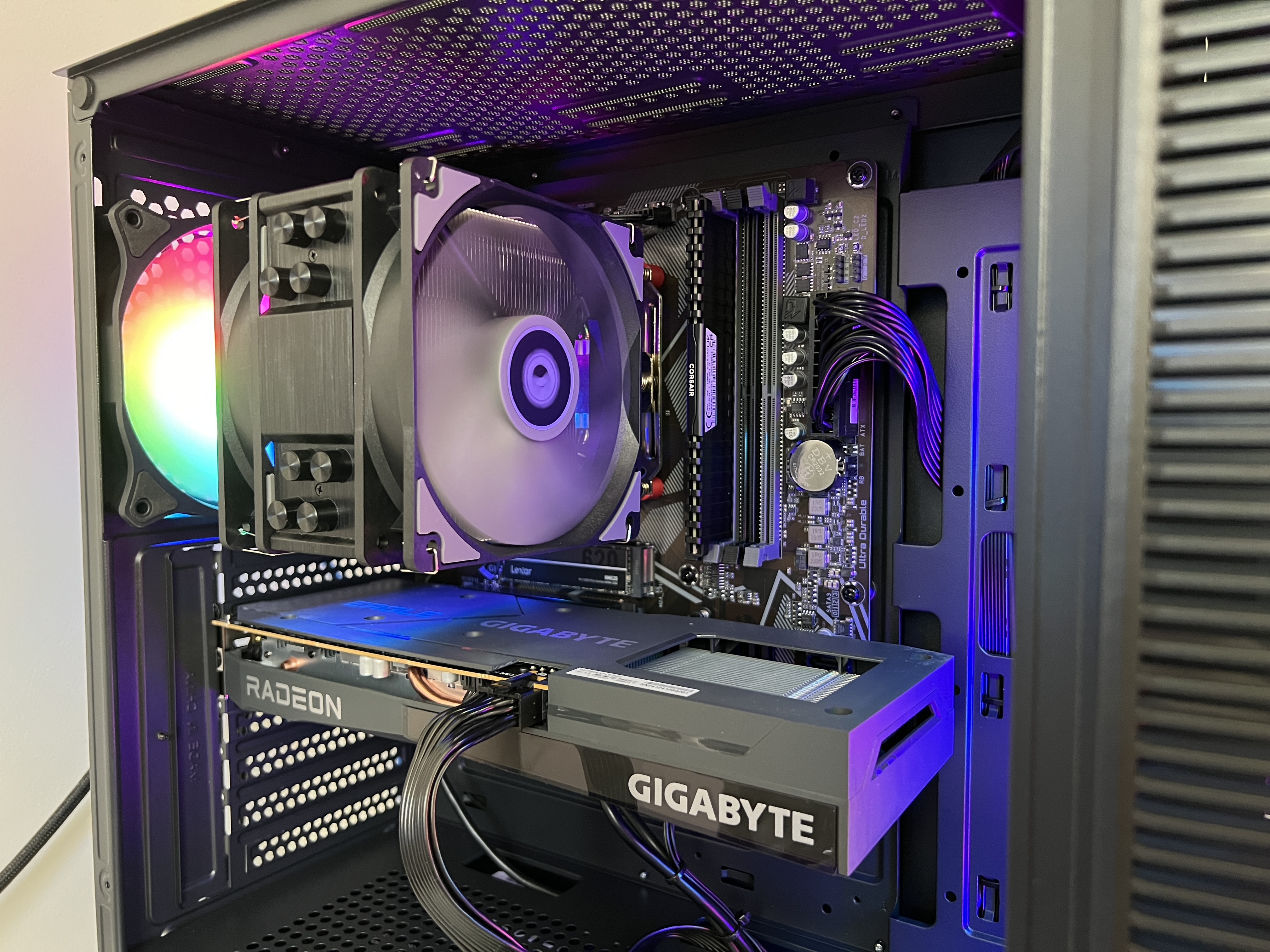 După cum puteți observa, componentele sunt accesibile, dar bine alese. Procesorul AMD Ryzen 5 5600, deși nu este cel mai scump, oferă performanțe remarcabile în gaming. Montat pe o placă de bază GIGABYTE B550M DS3H, care deși simplă, oferă tot ce ai nevoie pentru a construi un sistem solid: două sloturi M.2 și patru sloturi pentru RAM. Răcirea VRM-urilor nu este cea mai avansată, dar este suficientă pentru utilizarea standard, fără riscul de supraîncălzire.